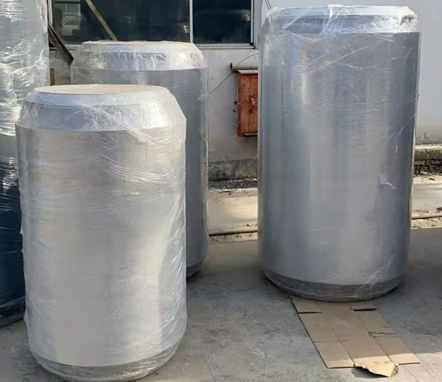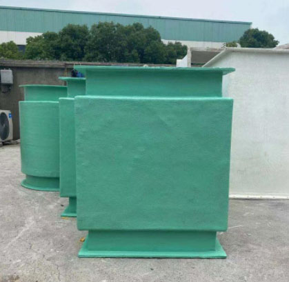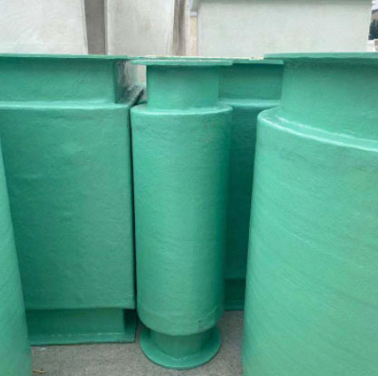 玻璃鋼消音箱,包括殼體,內(nèi)膽,進(jìn)氣管和出氣管,其特征在于殼體和內(nèi)膽采用纖維復(fù)合材料糊制成型,內(nèi)膽呈一端開(kāi)口另一端封閉的筒狀,內(nèi)膽封閉一端的筒體壁上布有通氣孔,內(nèi)膽封閉端穿過(guò)殼體壁插在殼體內(nèi),內(nèi)膽與殼體壁密封連接,內(nèi)膽開(kāi)口端與耐熱波紋橡膠出氣管的一端相連接,耐熱波紋橡膠出氣管的另一端與復(fù)合材料制成的導(dǎo)氣管相連接,殼體上設(shè)有進(jìn)氣管,內(nèi)燃機(jī)排氣管經(jīng)耐熱波紋橡膠進(jìn)氣管與殼體上的進(jìn)氣管相連接,本實(shí)用新型具有簡(jiǎn)化制作工藝,延長(zhǎng)使用壽命,節(jié)省維修費(fèi)用,增加營(yíng)運(yùn)效率,消音效果好等優(yōu)點(diǎn)。